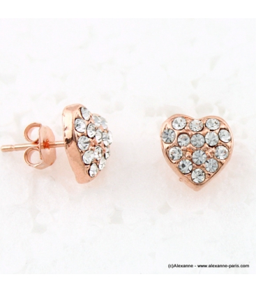 Vous allez être séduites par ces mignonnes boucles d'oreille coeur en métal et strass ! Discrètes et élégantes, elles sont dotées d'un fermoir de type poussette. Ce bijou vous comblera d'amour...