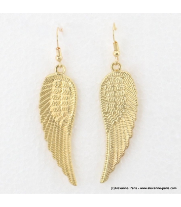Boucles d'oreilles en forme d'ailes d'ange en métal bleu turquoise, argenté ou doré